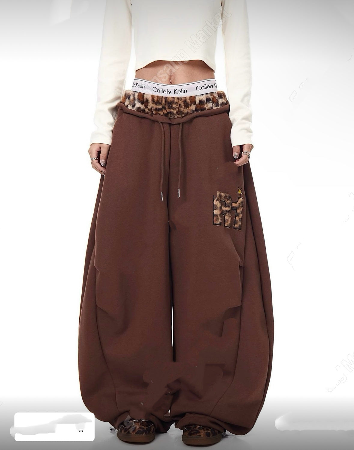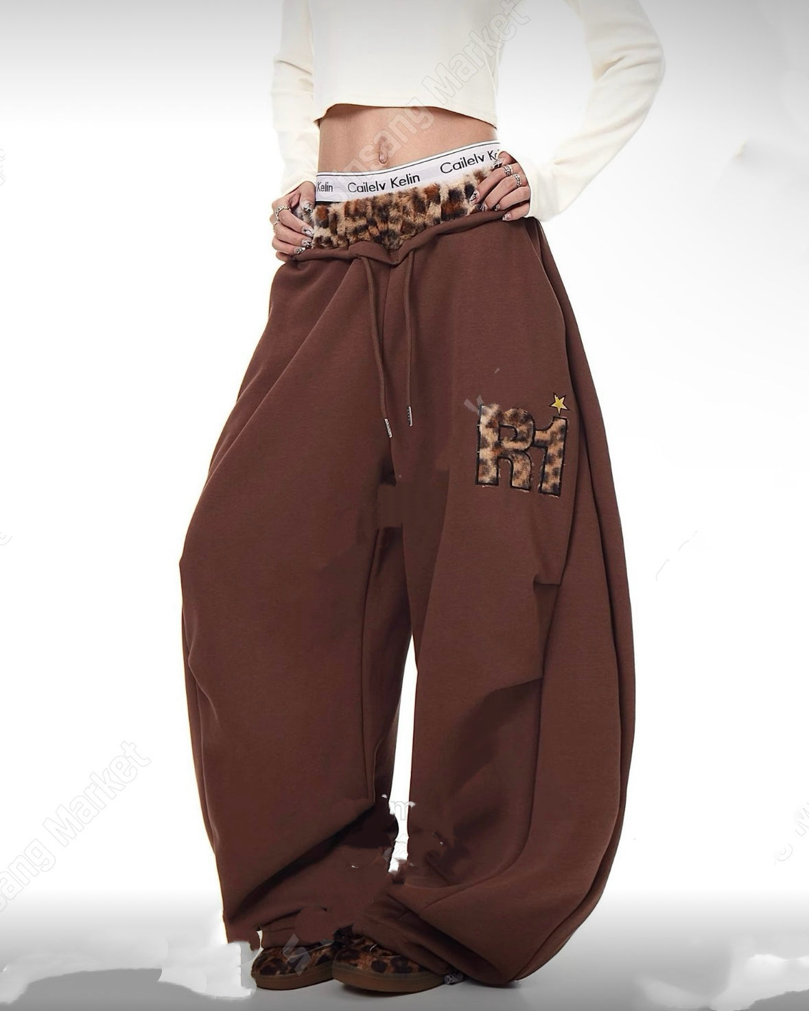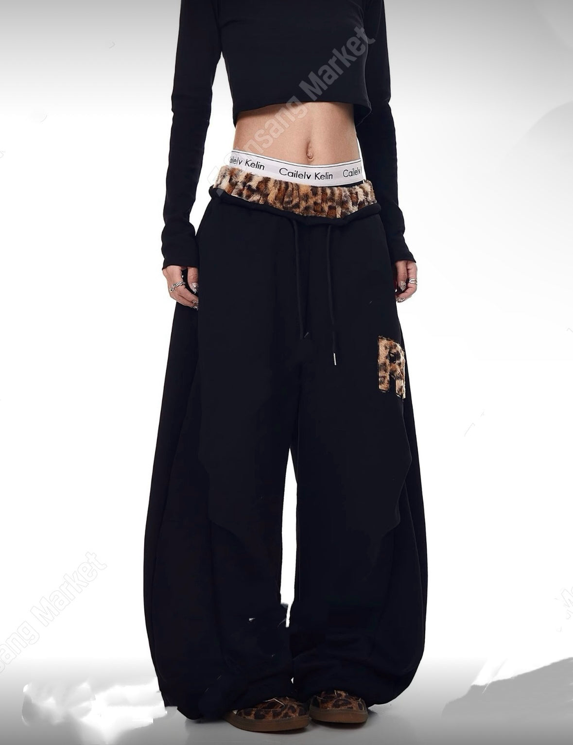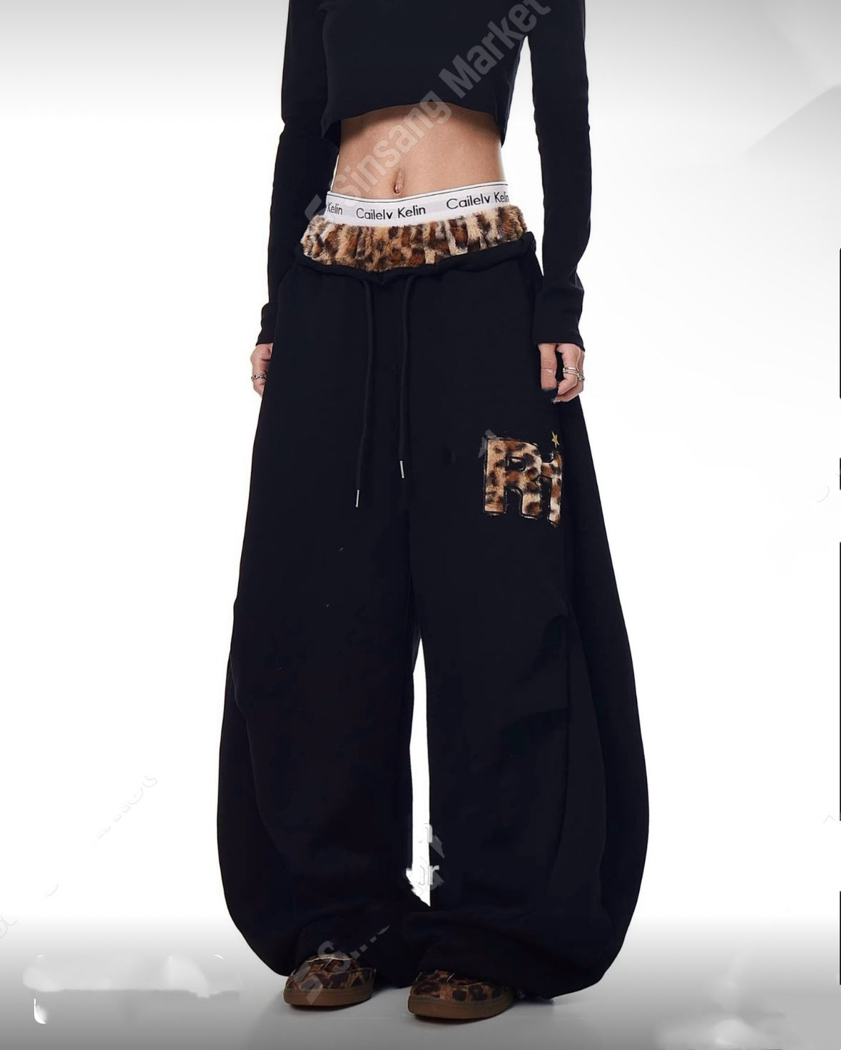 豹紋束帶長褲